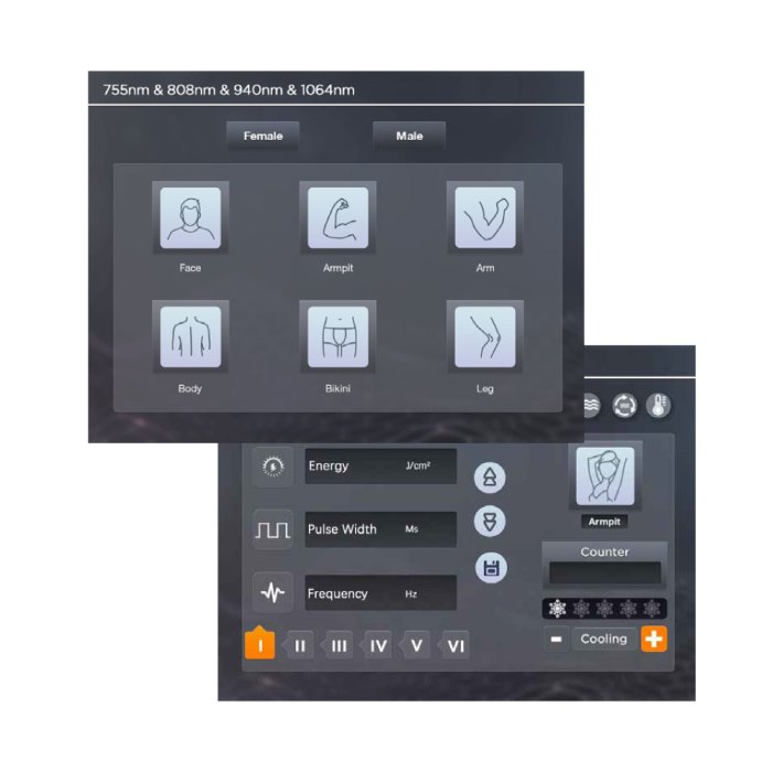 - Jusqu’à 4 longueurs d’onde pour éliminer définitivement et en toute sécurité tout type de poil sur tous les types de peau.